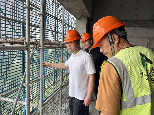 領導們一行深入施工現場,重點對起重吊裝作業、腳手架搭設、高處作業平臺、臨時用電、施工機具管理及消防設施配置等關鍵環節進行系統檢查,對發現的問題和隱患現場提出整改意見。